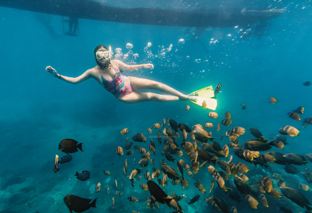 Another option we suggest you explore underwater in Bali is visiting Nusa Lembongan; this tiny island is really recommended if you like a quieter place to explore underwater activities like snorkeling or diving.